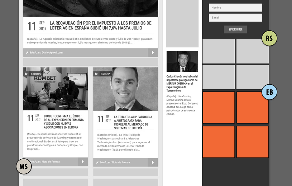 Banner edición español e inglés | Banner Newsletter Español e inglés | Notas edición español e inglés | Notas Eventos.